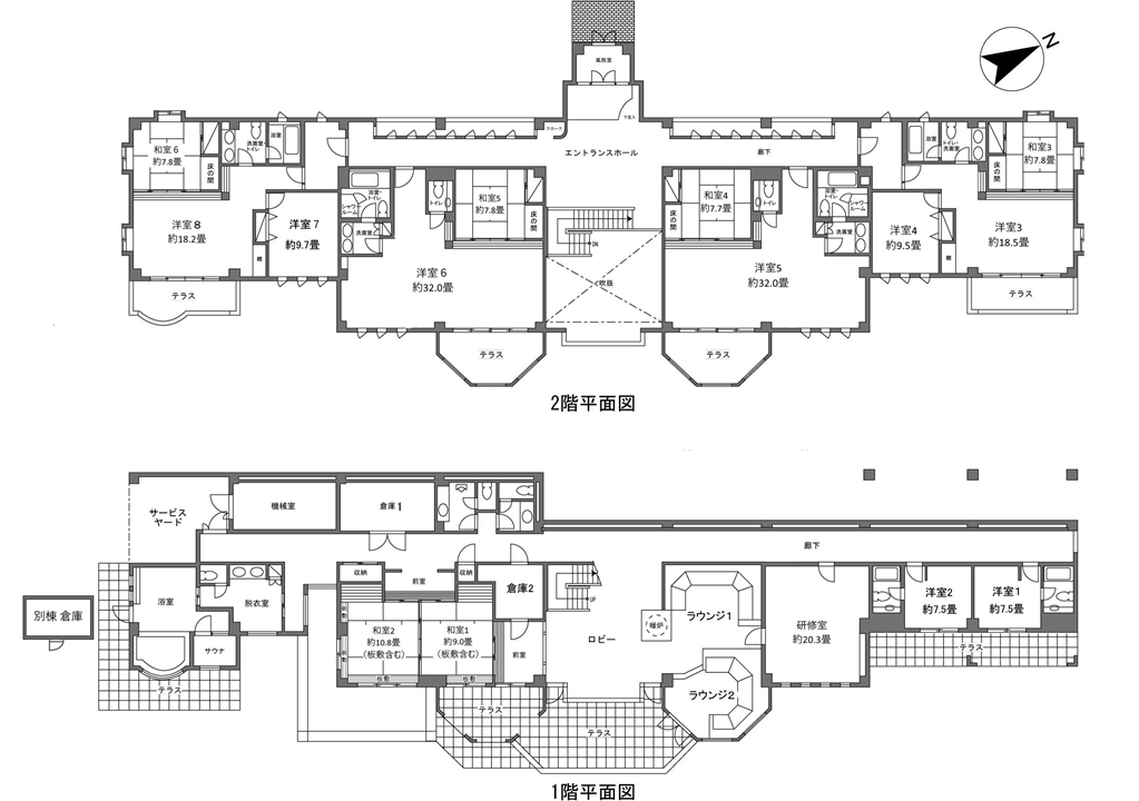 | 建物 | 延床面積 | (公簿)837.60m2(253.37坪) 1階面積/405.85m2(122.76坪) 2階面積/431.75m2(130.60坪) |