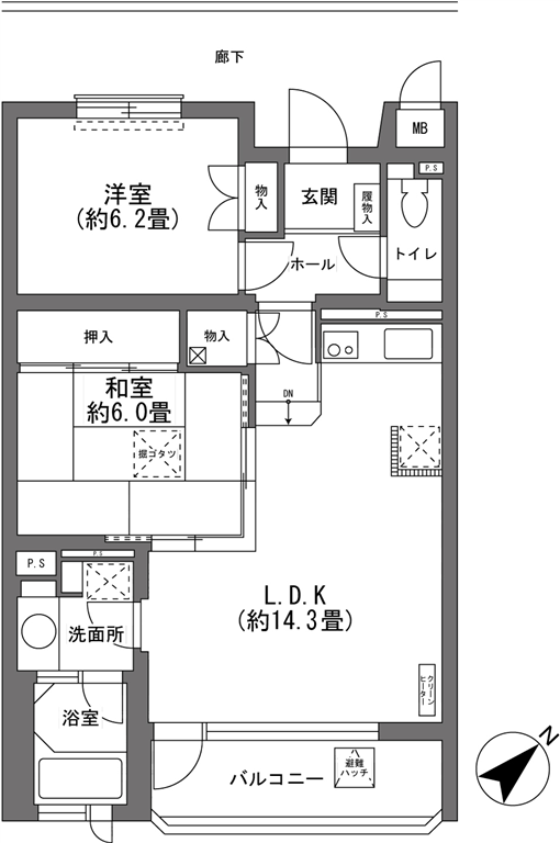 | 建物 | 専有面積 | (壁芯)62.72m2(18.97坪) |