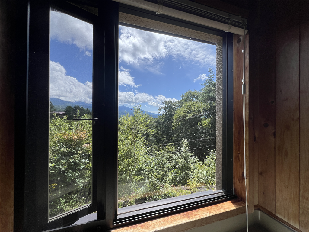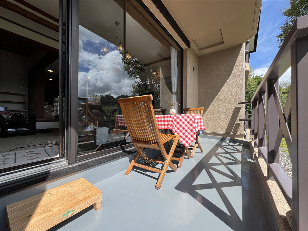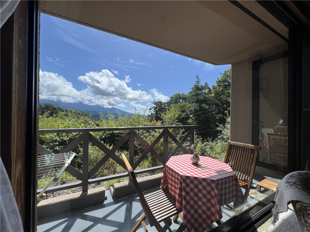 カースペースから玄関先まで階段8段と比較的容易にアプローチ可能な1階住戸。リビングに腰掛けバルコニー越しに眺める八ヶ岳は心惹かれる景観です。