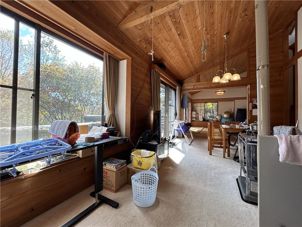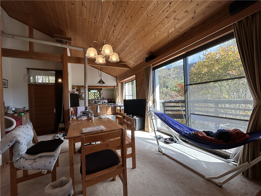 標高約1600mの冷涼な気候。約14.7畳のLDKは、勾配天井で開放感があります。