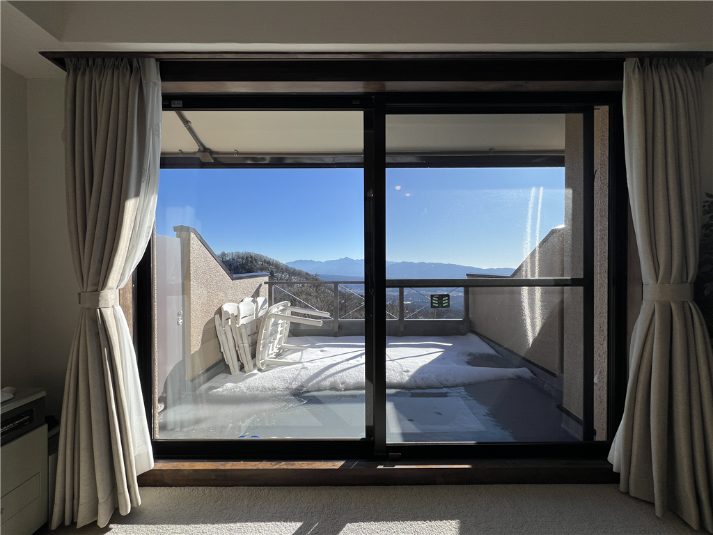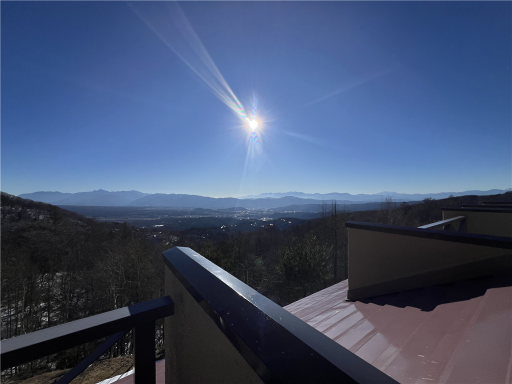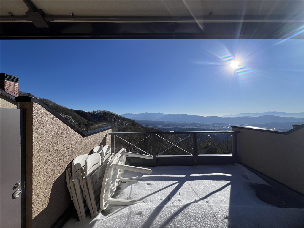 19.4m2のルーフバルコニーから眺める南アルプスと中央アルプスの雄大な山景が魅力