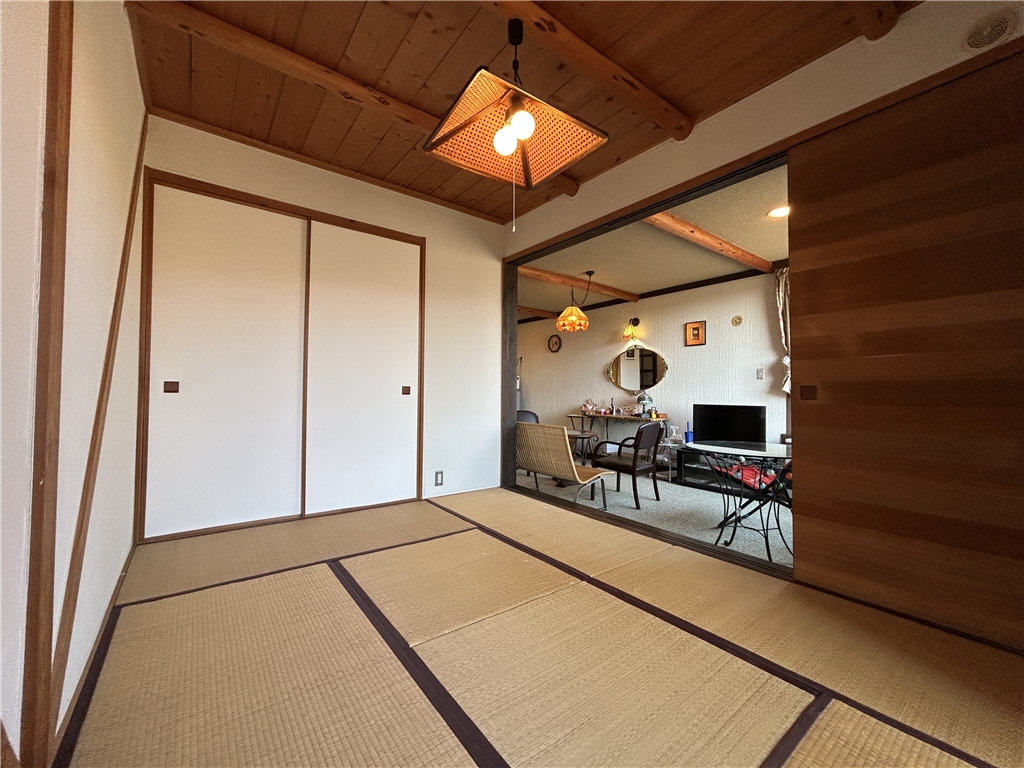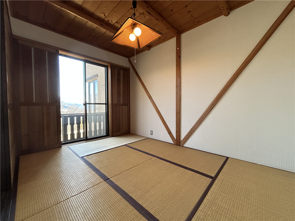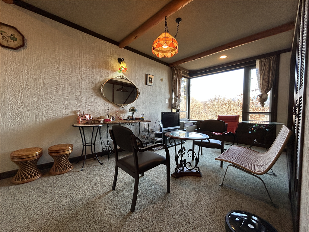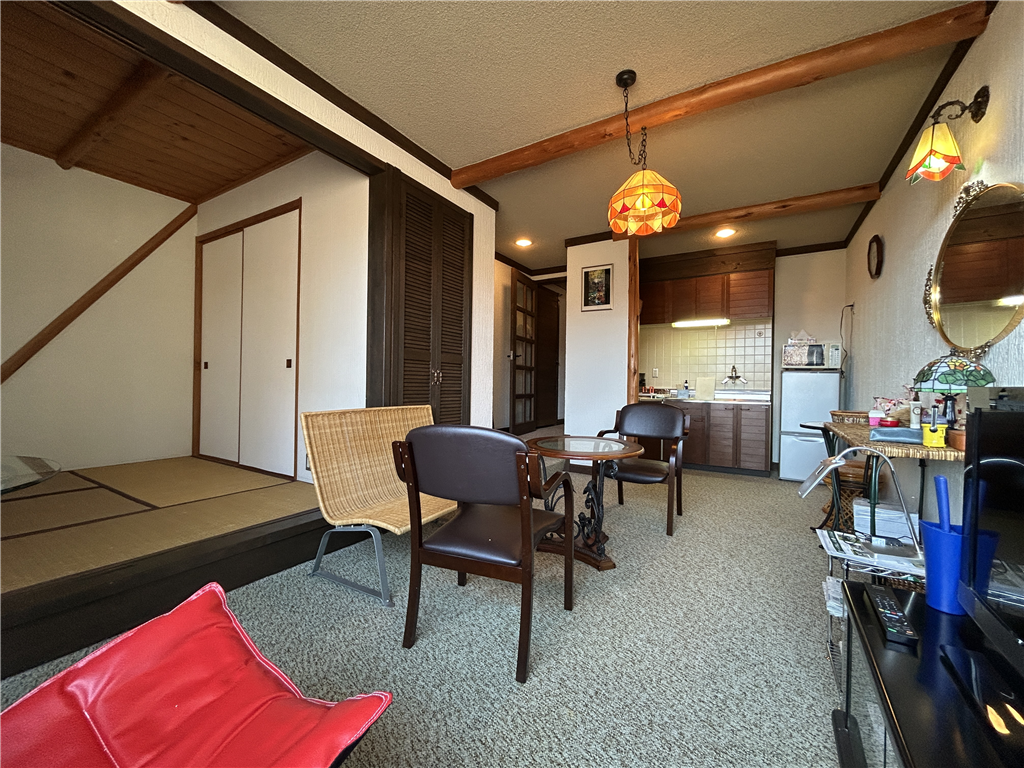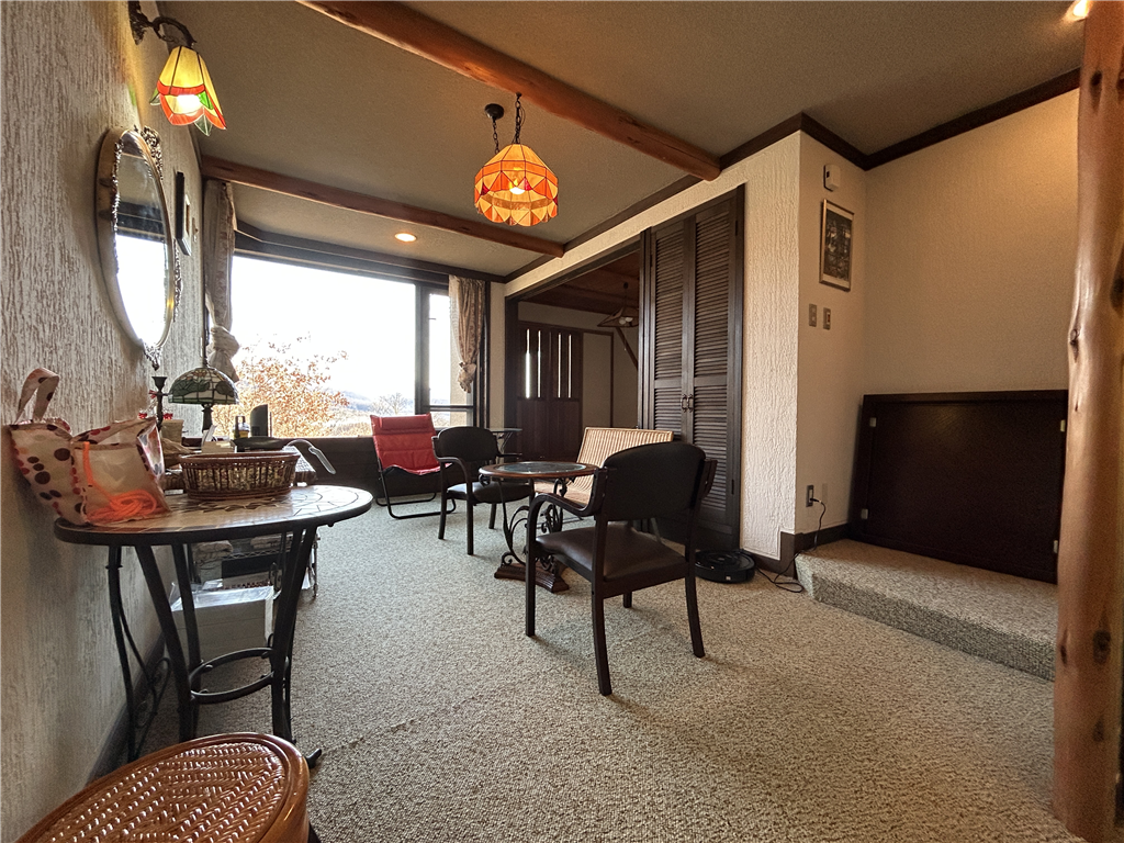南東向きで明るいLDK。山荘風の室内は落ち着いた雰囲気でゆったりとくつろげます。