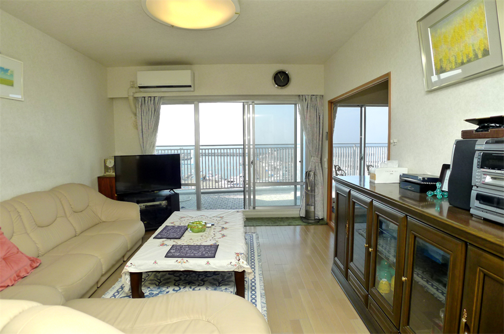 角部屋の為、西・北・東側の三方向にバルコニーがあり、風通しが良く、眺望良好な2LDKです。対面カウンター付のLDKと約11.8畳の洋室の他、西側バルコニーに面した和室や、ビューバスもあり、リゾートライフを満喫していただける物件です。
