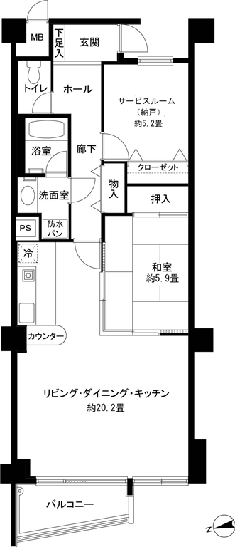| 間取り | 1LDK+サービスルーム(納戸) | |