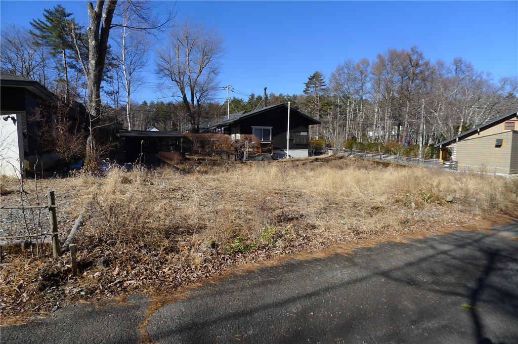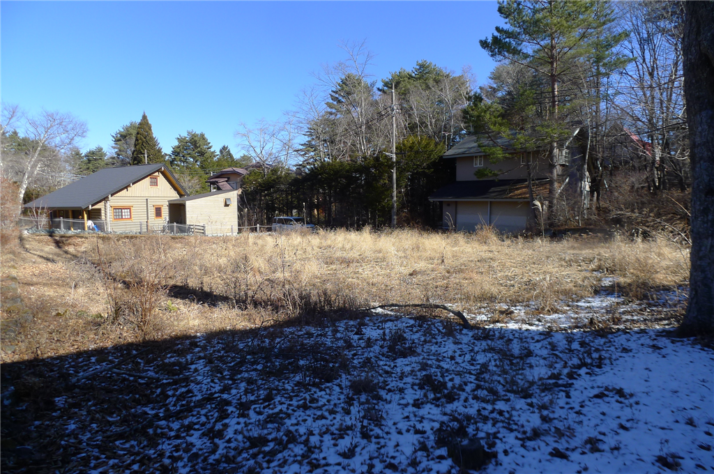 自然豊かな富士桜高原別荘地内、比較的フラットな約108.90坪の土地。敷地内は伐採済のため、建築イメージが広がります。