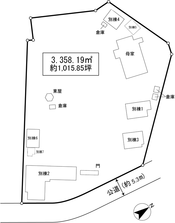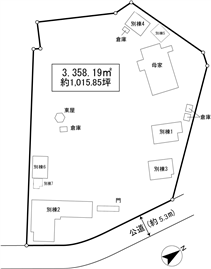 | 別棟:延床面積 | (公簿)118.68m2(35.90坪)、建築/1985年3月、構造/木造スレート葺2階建 | |