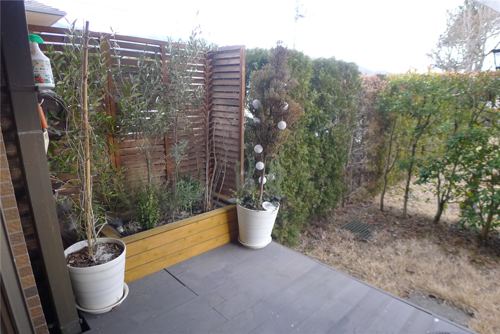 河口湖畔まで徒歩約9分(約700m)、1階テラス付きの南西向き住戸。