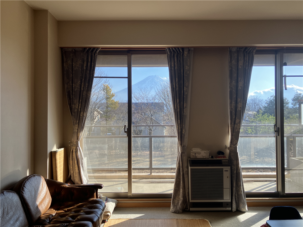 富士山を望む1LDK南向き住戸。壁付キッチンの為、リビングダイニングを広く使えます